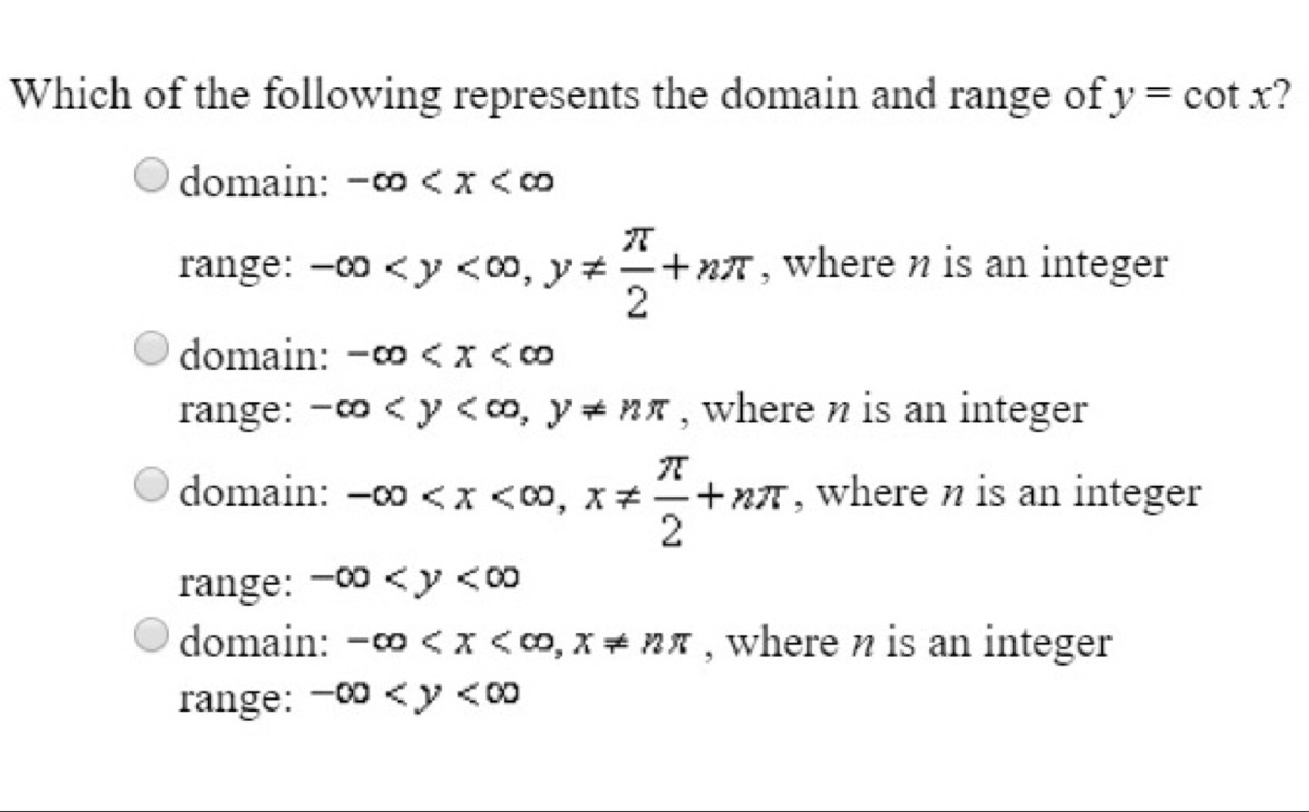 Since cot x has sin x in denominator, cot x is undefined whenever sinx =0