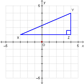 We can see this by connecting the origin to point X by moving up 1 space and left 3 spaces. Then if we imagine to rotate this shape 90° clockwise about the origin, it goes right 1 space and up 3 spaces, which is at the coordinate (1, 3).