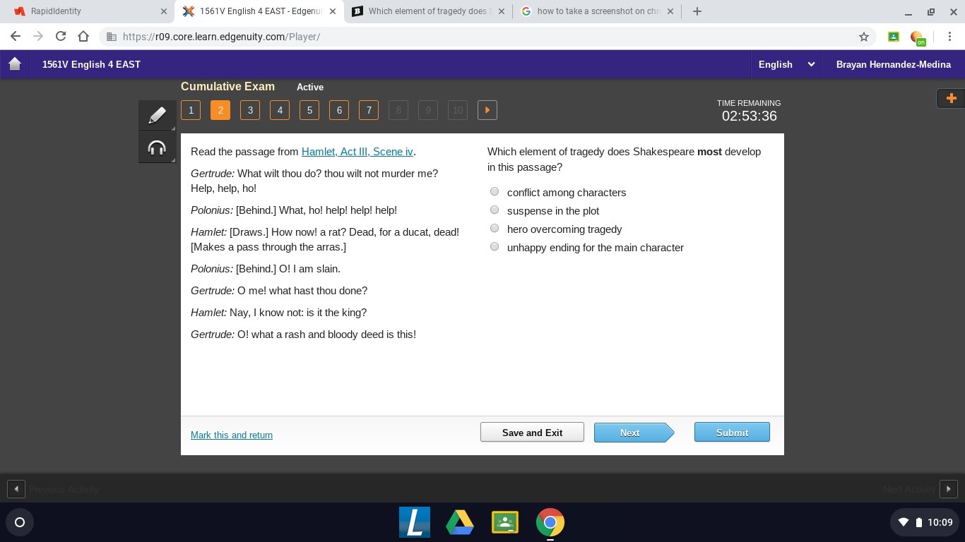 - The hero (Hamlet) has not overcome the tragedy. In fact, the play will end tragically.