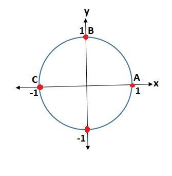 On the unit circle, out of points A, B and C, the point -1 is at point C.