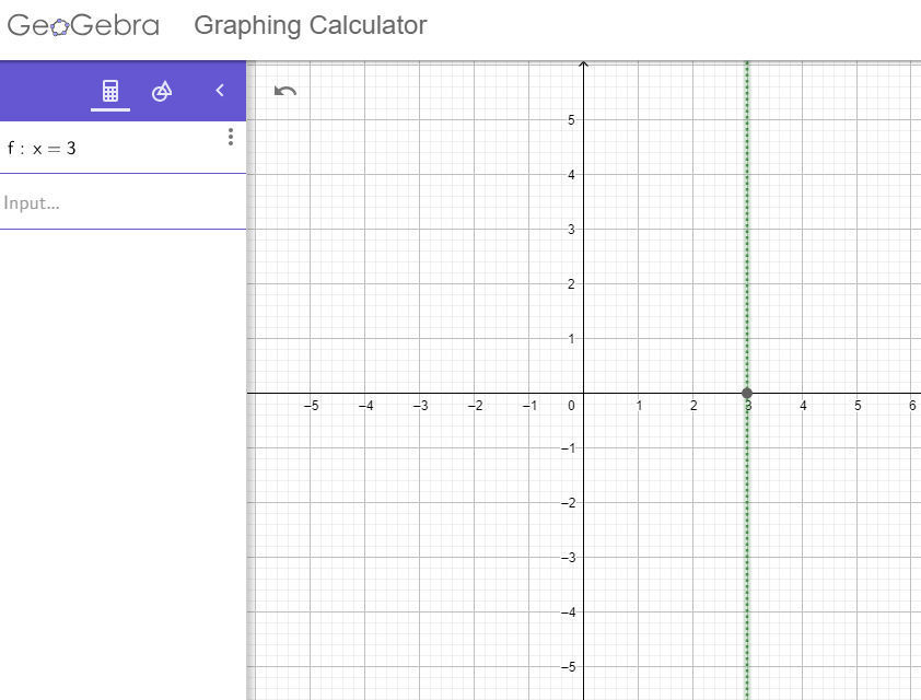 We draw a dotted line at x=3, as seen in the first screenshot.