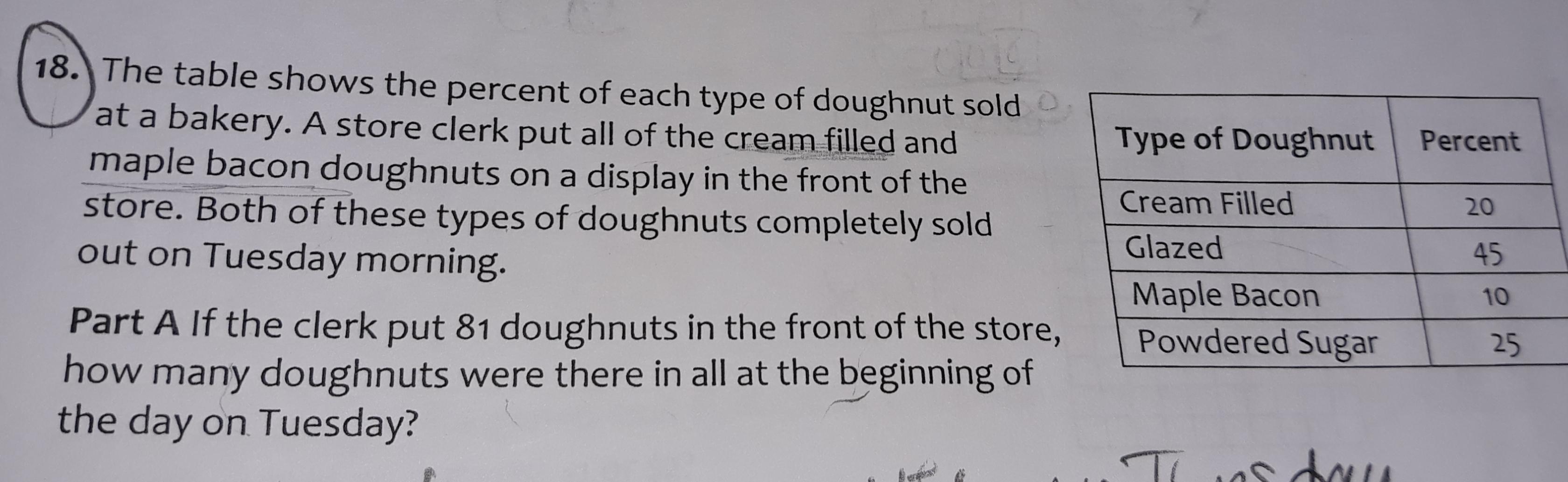 See the table where types of Doughnuts and their percentages are shown.