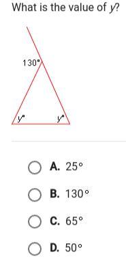 You know that the y variable is congruent for both y's so they will have the same angle measure and you can divide the 130 by 2