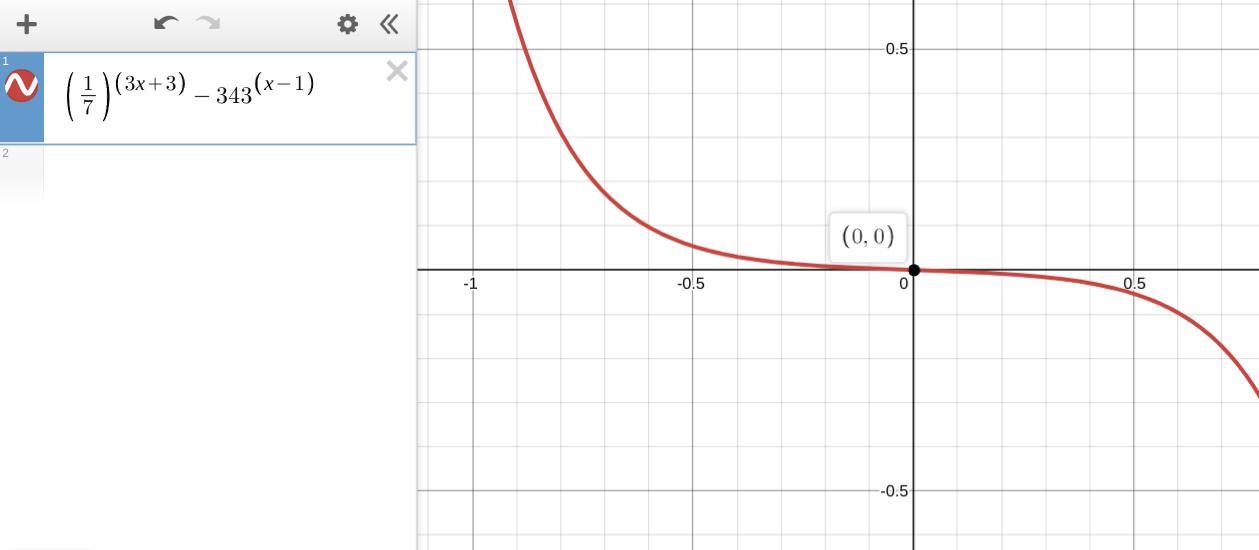 (1/7)^(3x+3) -343^(x-1) = 0 . . . . . this graphing calculator likes x for the independent variable