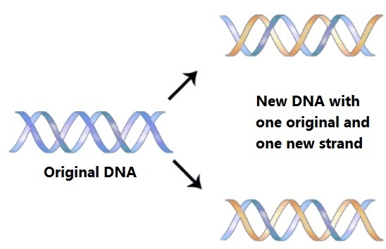 Explanation: When DNA replicates, the original DNA unwinds and both the unwinded strands act as a template to make new strand. This way, the new DNA has one original copy and one new copy of DNA. That's why we call it "Semi-conservative mode of Replication". Also transcription factors have no role in DNA replication. There are separate molecules which initiate DNA replication.