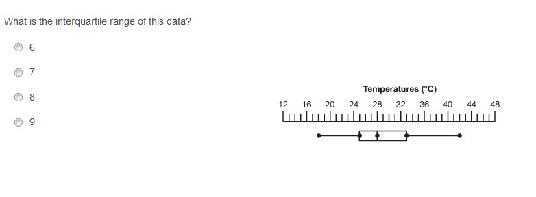 Q1 is the left part of the box and Q1 is 25. Then we find the Q3, which is 33. Then we subtract those numbers. 33-25=8