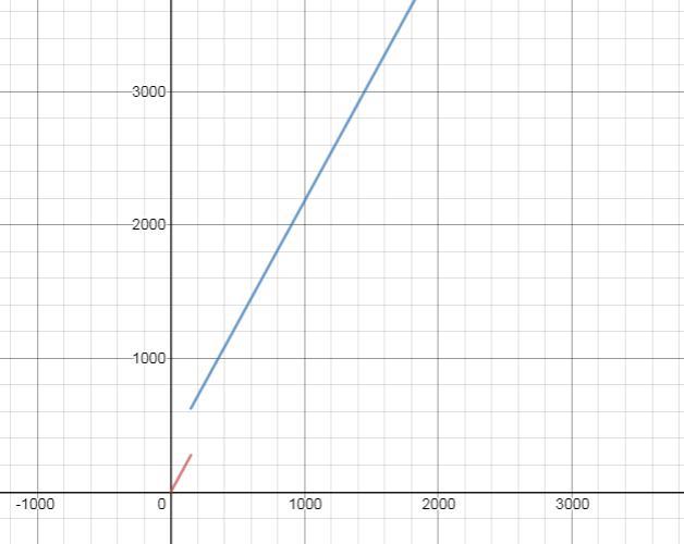 ⇒ y = 1.83x for x ≤ 1000