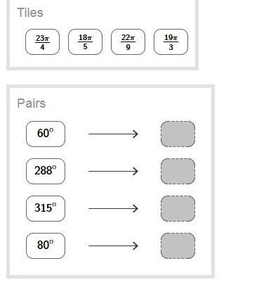 We know that π radians <em>is equivalent to</em> 180°. To solve this problem, we need to transform the given measurements from radians to degrees. Therefore: