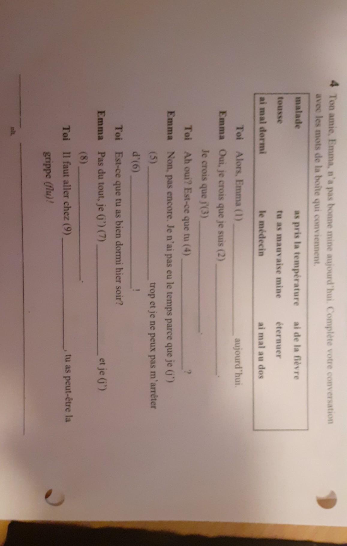 Emma :<em> Oui, je cois que je suis</em> malade.