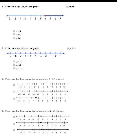 The shaded area is above this line, and the line is part of the solution set, so we want an inequality that has "y" and the comparison symbol in this order: "y ≥" or "≤ y".