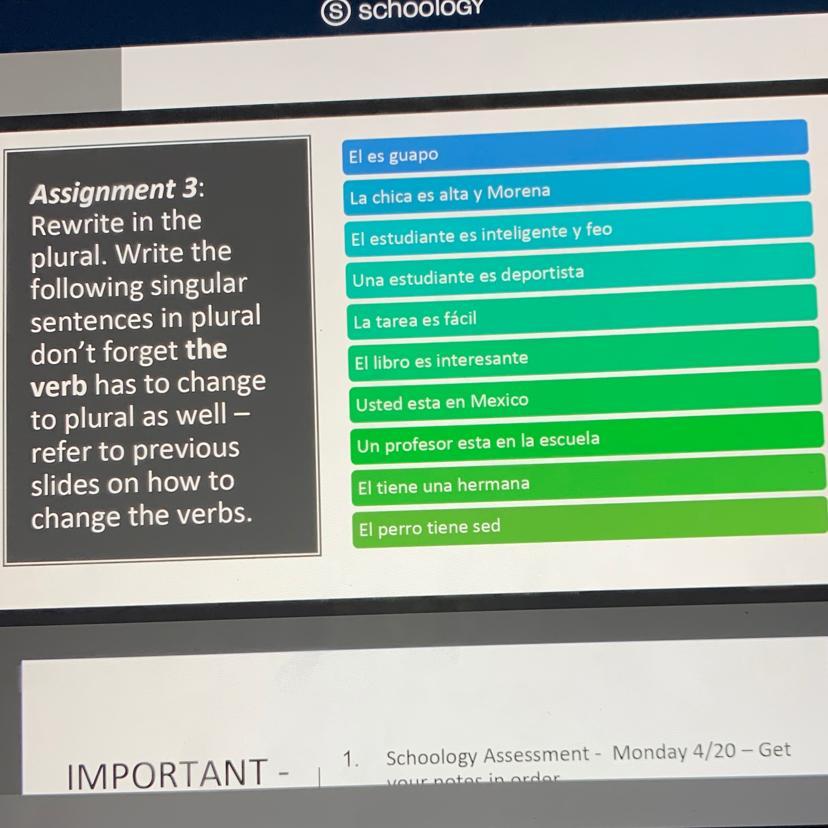 Me la vas a mostrar esta tarde. Vas a mostrármela esta tarde. Las mujeres deben comprarlas. Las mujeres las deben comprar. Los niños tienen que lavárselas. Los niños se las tienen que llevar. Ustedes no se lo pueden comer. Ustedes no pueden comérselo. Nosotros estamos bebiéndolas. Nosotros las estamos bebiendo. Marta y tú no deben hacérselos. Marta y tú no se los deben hacer. Te lo voy a pedir esta tarde. Voy a pedírtelo esta tarde.