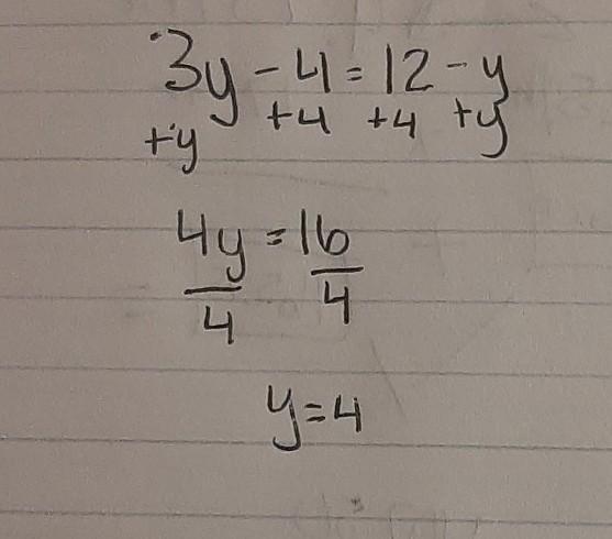 Lets begin by combining like terms, starting with y. We can take the -y on the right, and bring it to the left side, adding it with the 3y already there. We are now at.