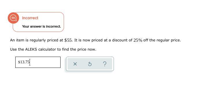 An item is regularly priced at $55. It is now priced at a discount of 25 off the regular price.