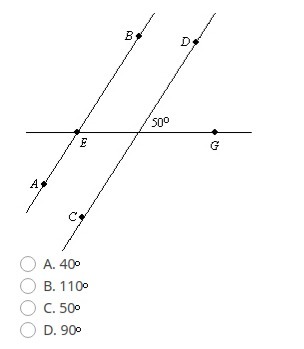 We can see that angle GEB is corresponding angle of the angle that measures 50 degrees. Therefore, the measure of angle GEB is 50 degrees and option C is the correct choice.