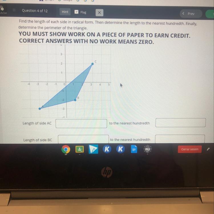 In this care leg 1 is 4 and leg two is the square root of 50. So we will square them to find c which is the hypotenuse.