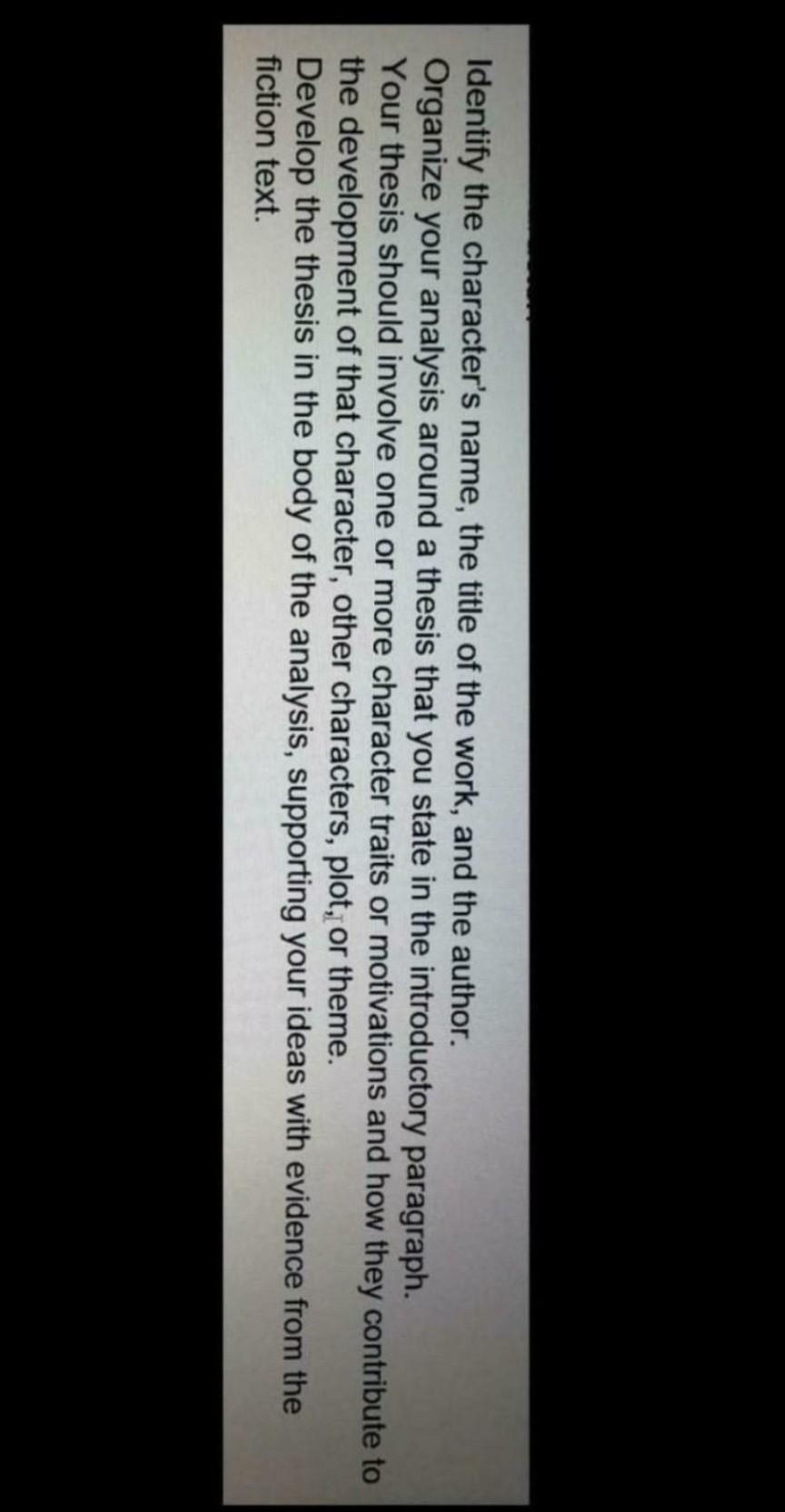 Extremely Need Help) Write a character analysis. Choose one character from any work of fiction you have read in this course. Wri