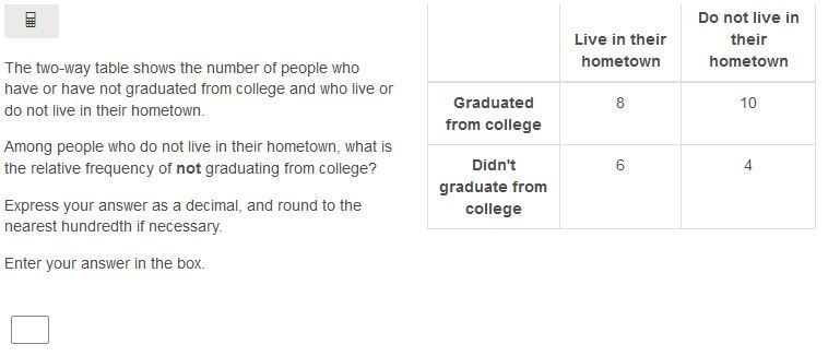 Thus , Among people who do not live in their hometown the relative frequency of not graduating from college = 0.28