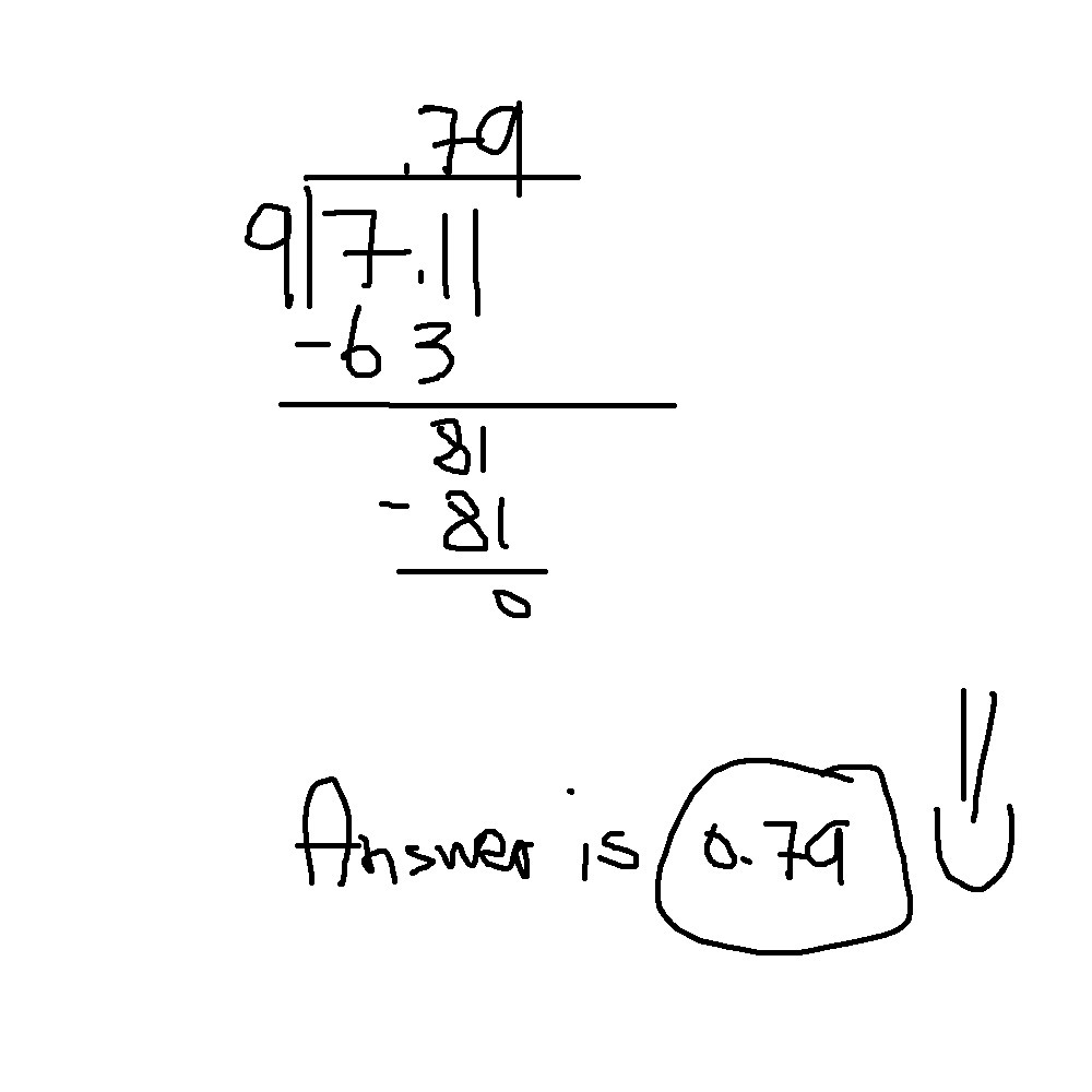 Okay we have 7.11 pounds of candies and we need to split them into 9 jars so we need to divide it