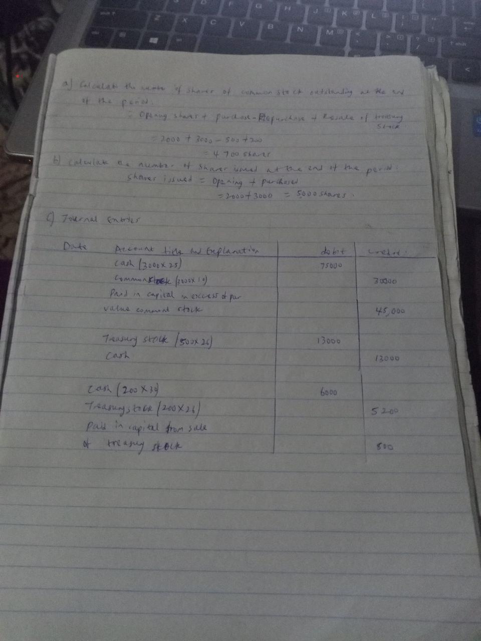 Required a. How many shares of common stock were outstanding at the end of the period?