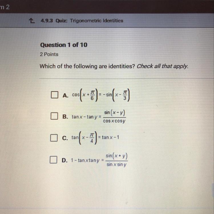 Which of the following are identities? check all that apply.