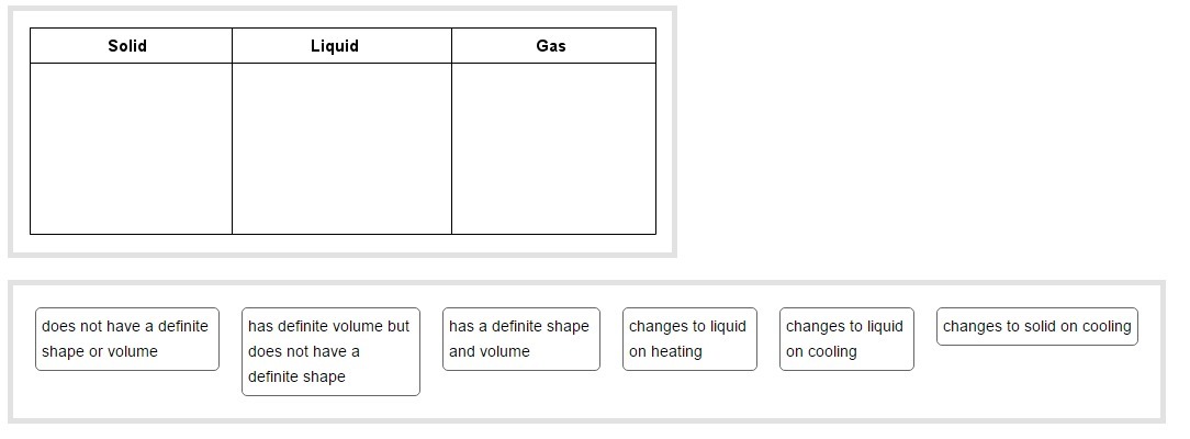 1) Gas: does not have a definite shape or volume and changes to liquid on cooling.