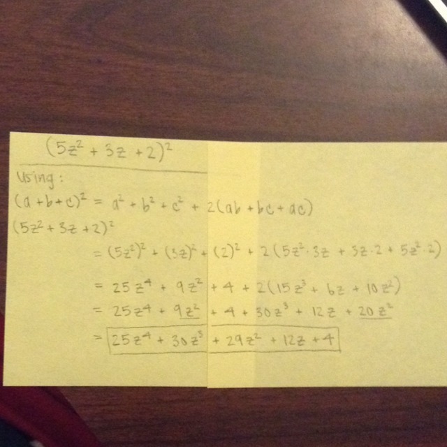 The answer is D. 25z^4 + 30z^3 + 29^2 +12z + 4