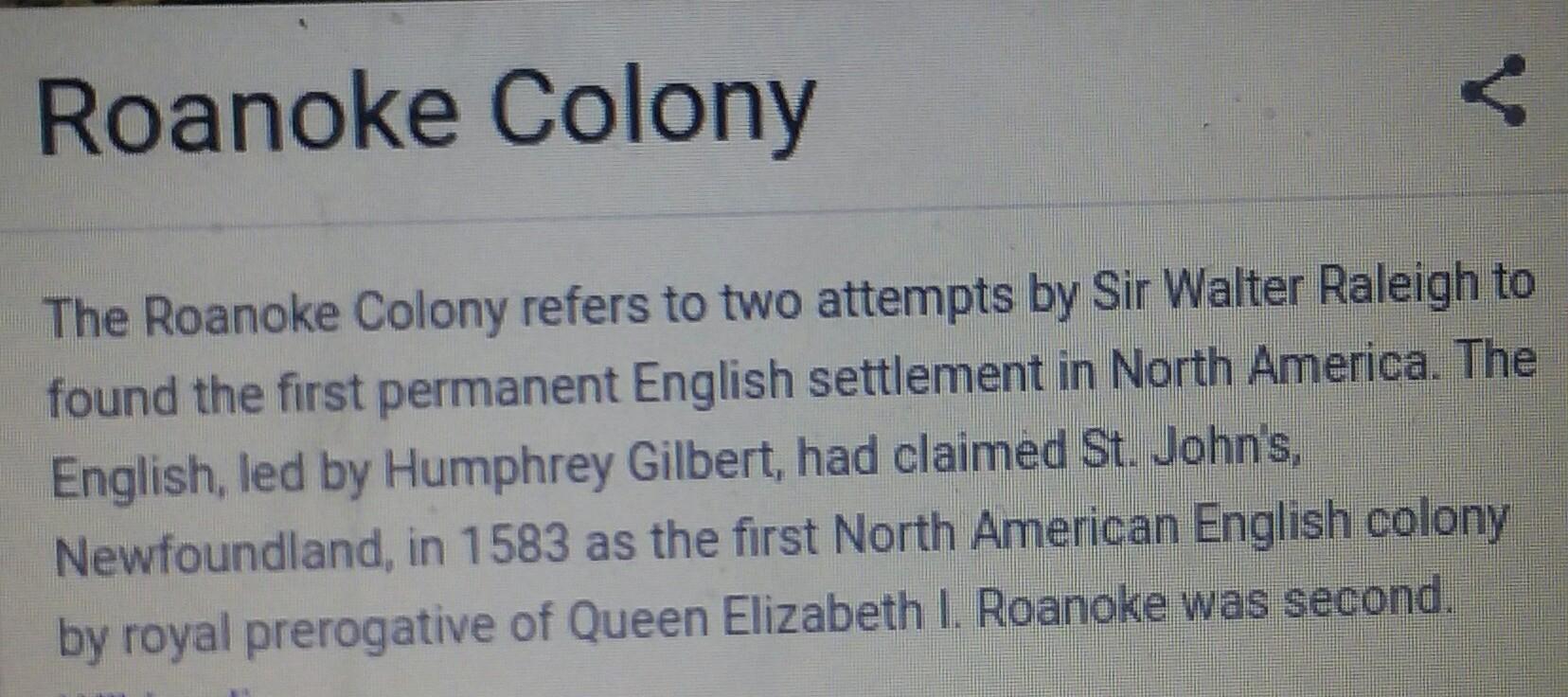 DescriptionThe Roanoke Colony refers to two attempts by Sir Walter Raleigh to found the first permanent English settlement in North America. The English, led by Humphrey Gilbert, had claimed St. John's, Newfoundland, in 1583 as the first North American English colony by royal prerogative of Queen Elizabeth I. Roanoke was second