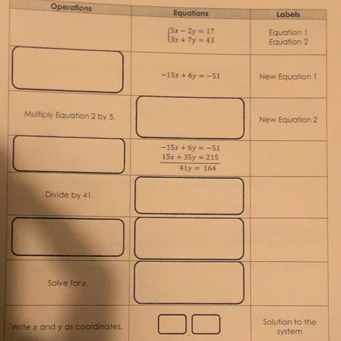 i.e., 5(3x + 7y = 43) = 15x + 35y = 215