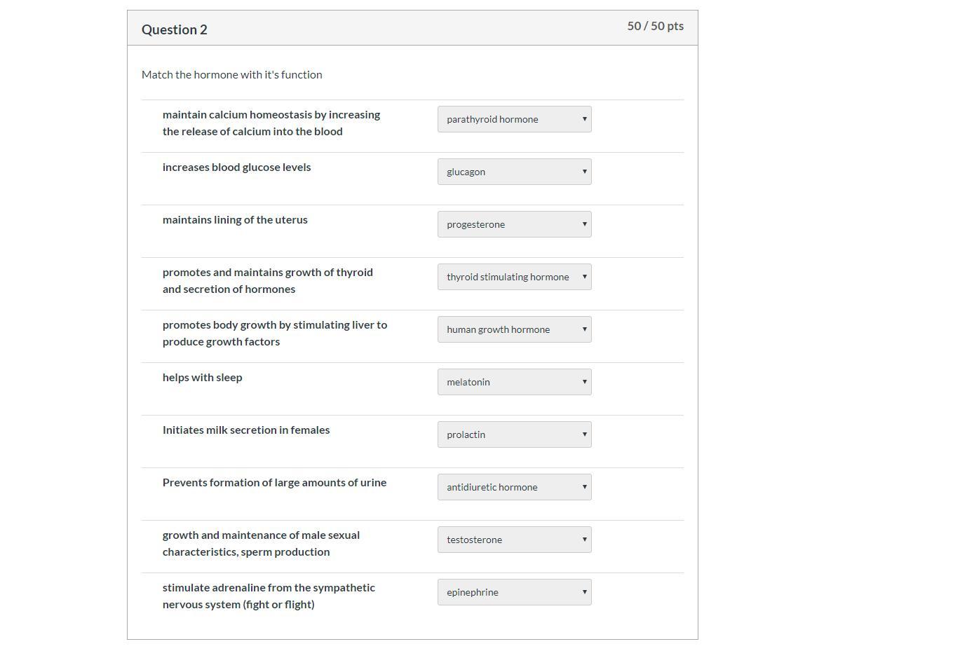 Match the hormone with it's function