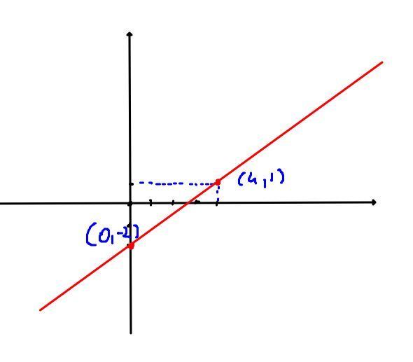 so 2 points on this line are (0, -2) and (4, 1). Check the picture 1: