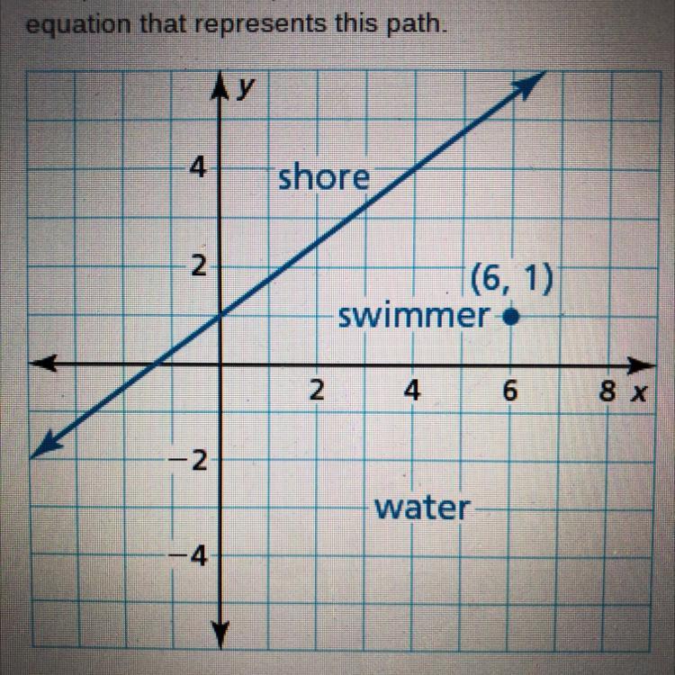 The equation that represents the path of the swimmer to the shoreline can be represented in the slope-intercept form, given as