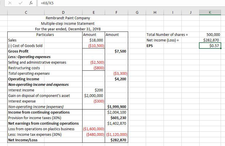 Rembrandt Paint Company had the following income statement items for the year ended December 31 ($ in 000s)