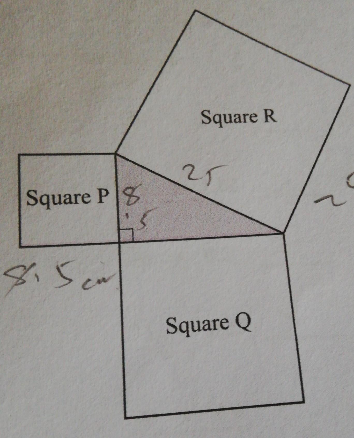 Let's start with square p. Square p has area = 17cm^2