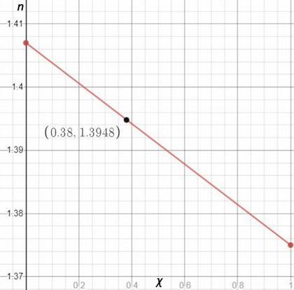 15 ml of the mixture in a round bottom flask, and then collect the distillate sequentially as four three ml samples labeled S1, S2, S3, and S4. Pure hexane has a refractive index of 1.375 and pure nonane has a refractive index of 1.407. You measure a refractive index of 1.3948 for one of the four samples. Assuming the refractive index varies linearly with mole fraction, estimate the mole fraction of hexane in this sample.