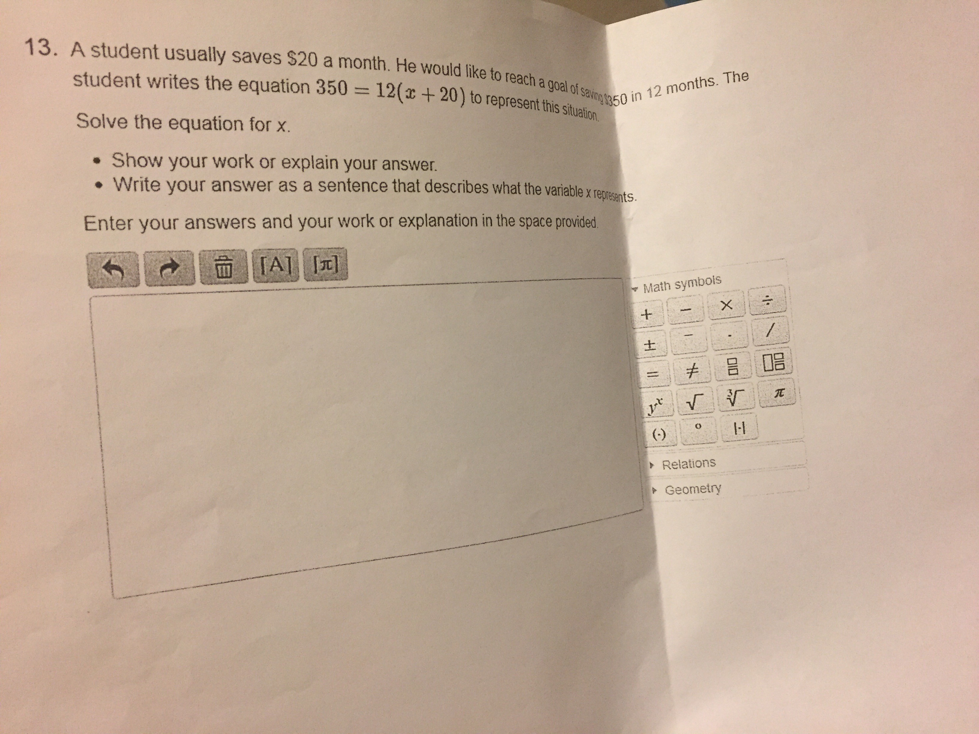 I am not sure if the “+” was supposed to go there or if that was just a typo, so I do apologize if this is wrong... but if it doesn’t belong in the equation at all, 20 = 2X is a fairly simply multiplication problem. You are to divide both sides by the 2 and you should get X = 10, because 2 goes into 20, 10 times; and the 2 goes into 2 only once, therefore the 2 now gets cancelled out.