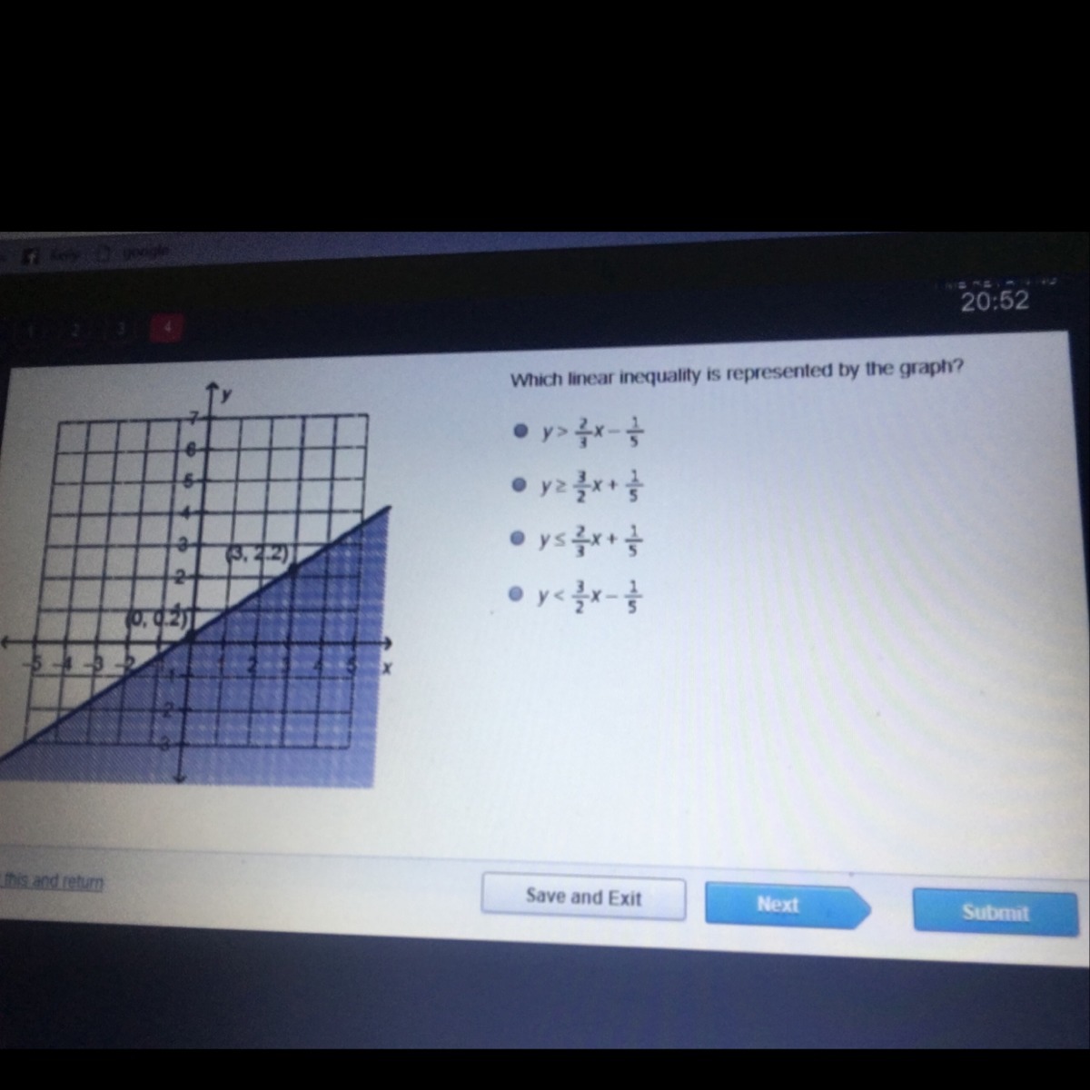 To find : Which linear inequality is represented by the graph.