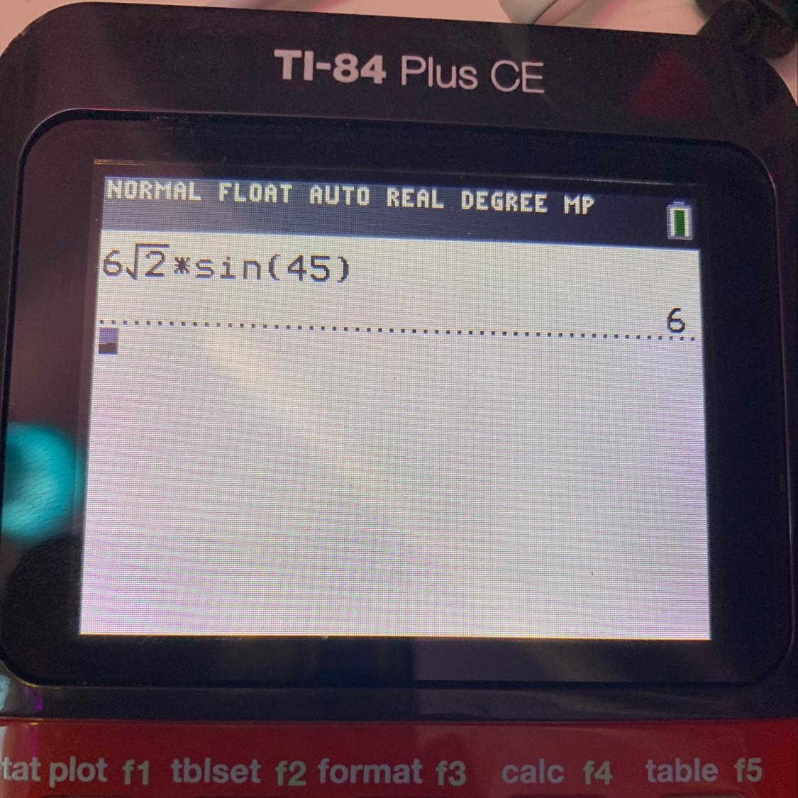 For y, you want to find adjacent so use cosin. To solve, it’s going to look like 6(sqrt)2 • cos(45) which gets you 6.