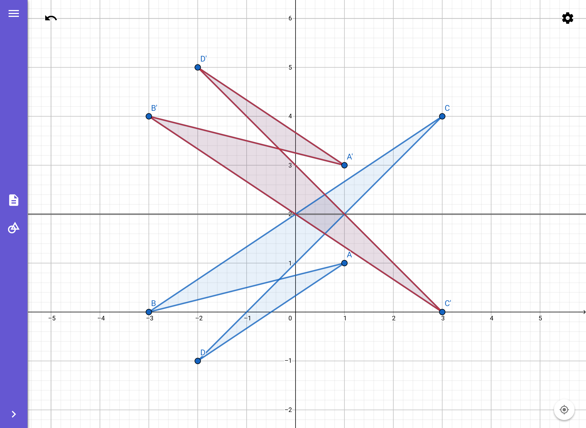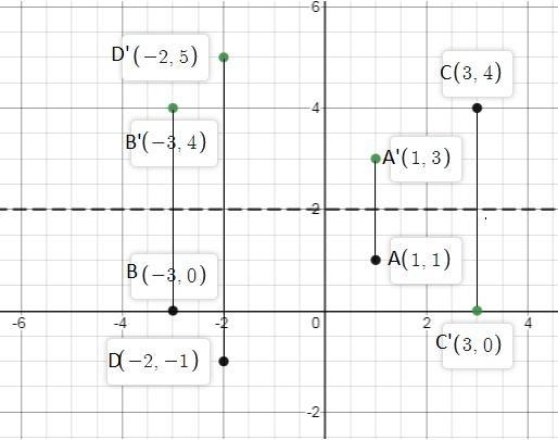The vertices of image are A'(1,3), B'(-3,4), C'(3,0) and D'(-2,5).