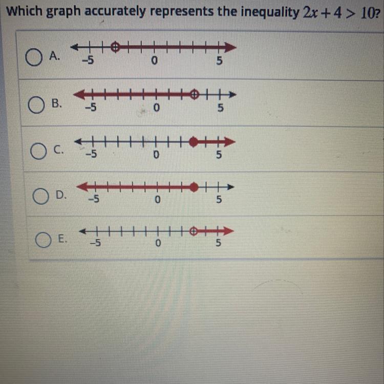 So, E represents this inequality as x is greater than 3 and it does not include 3 in it which is represented by an empty bubble.