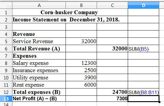 The Cornhusker Company  has earns a net profit of $7,300 on December 31, 2018.