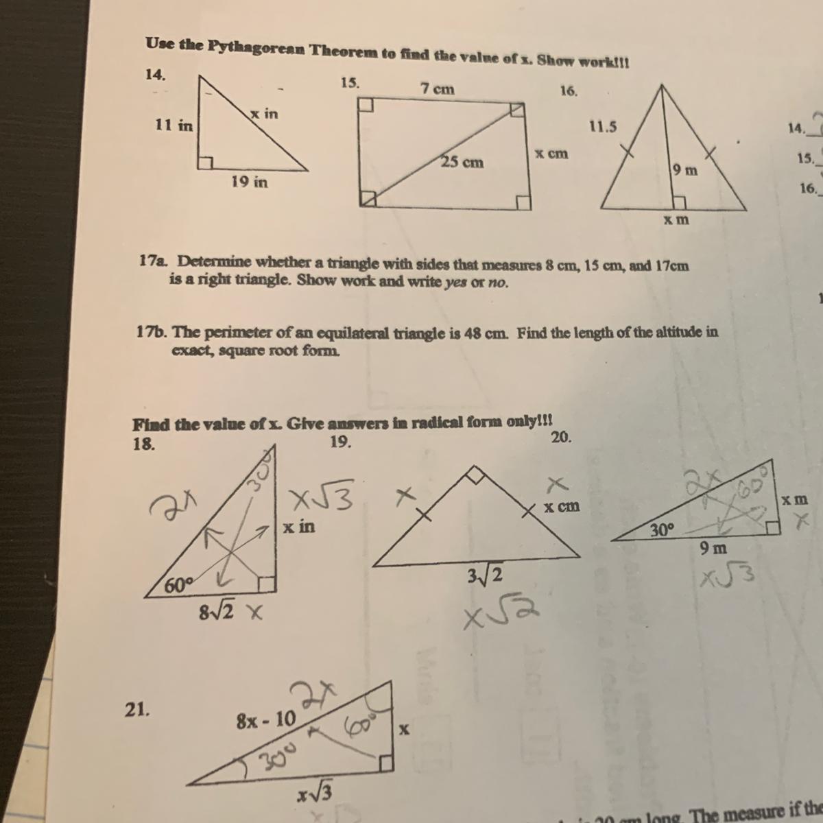 You have already marked the correct relationships on the drawings. Finding the value of x is a matter of making use of those relationships.