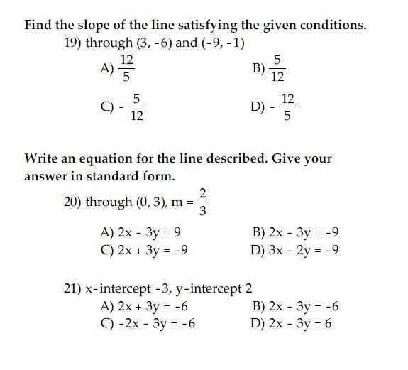 Then, you put the answer of the y's in the numerator, and x's in the denominator, giving you 5/-12, but you can't have a negative in the denominator, moving it up to become -5/12 as the slope.