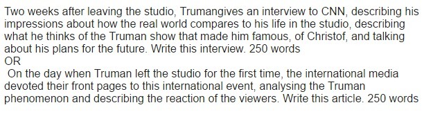 In Truman's interview he compares life to set life. Truman says it is so alike because they can both feel like they repeat like you have no control of your life. He says when you do something everyday for so long you begin to wonder if you are in control of your life. While as on the set you purpously don't making it a very good eye opener. When you can't control it purpously it is very different from being able to control it but not doing so. So he says live life to the fullest because a life where you aren't in control is not good at all. So stay in control.