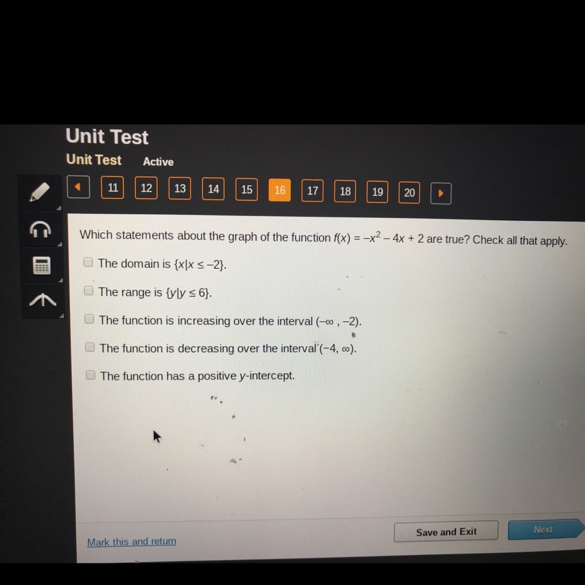 c)True, from the graph the the upward slope is from -2 and backward toward -∞