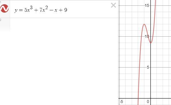 Next, when the leading coefficient, the coefficient of ther term of the highest degree, namely 5x^3, positive, the graph will approach +infinity in the positive direction (and approach -infinity in the negative direction).
