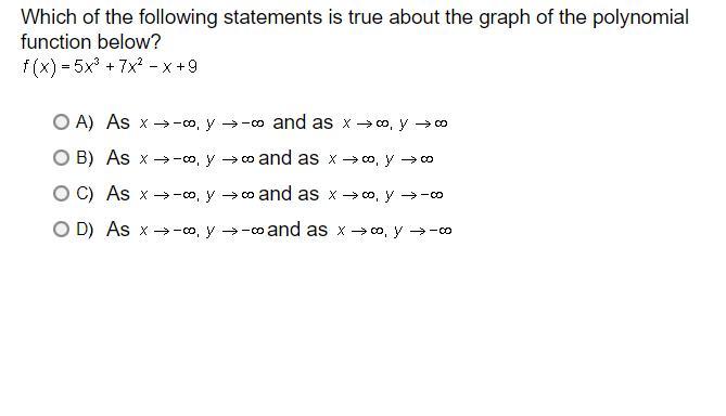 (A) As x -> -inf, y->-inf, and as x->inf, y->inf.