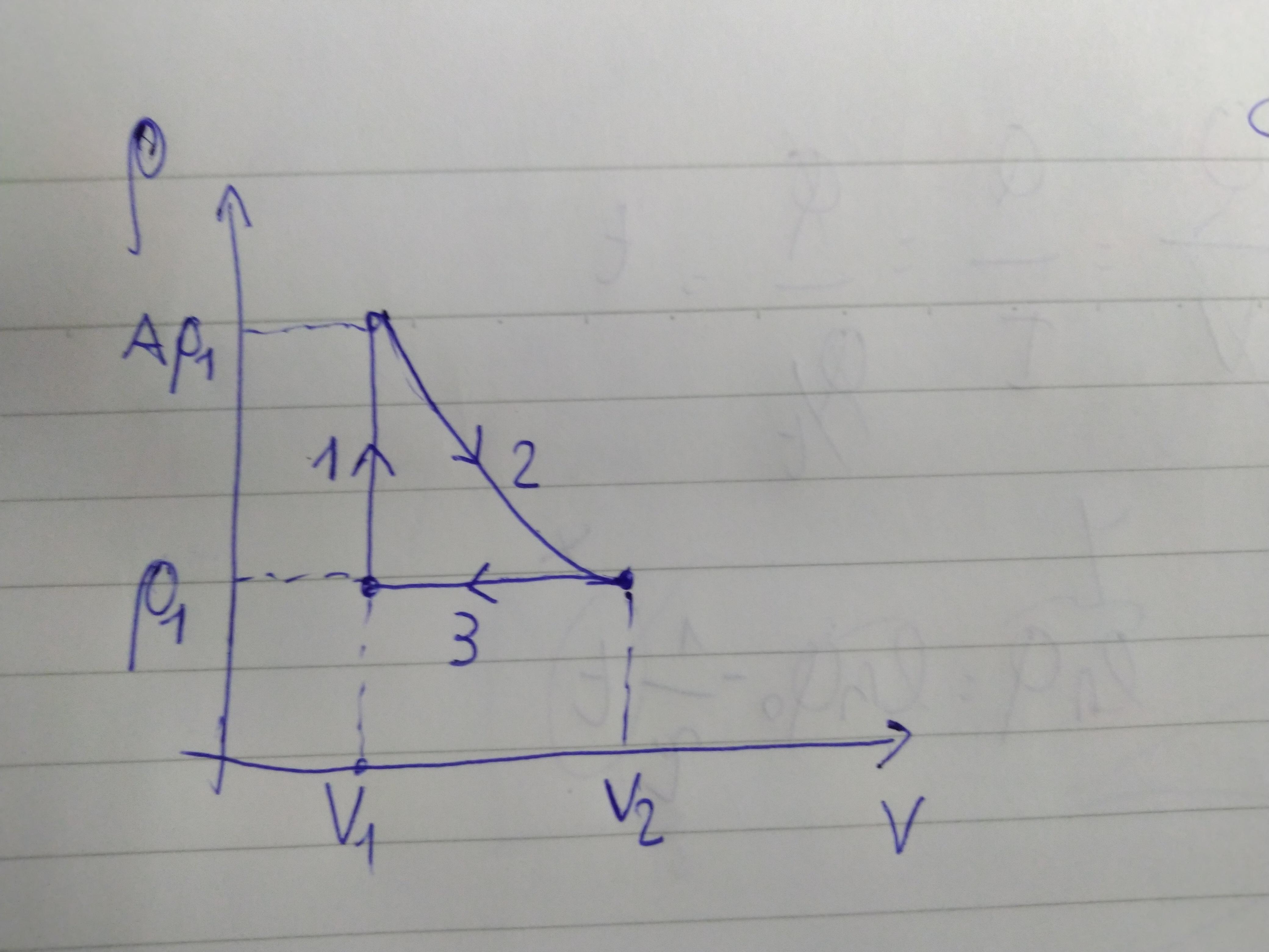 is the change in temperature. The temperature T2 can calculate again by using the ideal gas law at the new conditions of the gas, after its pressure has reached Ap1: