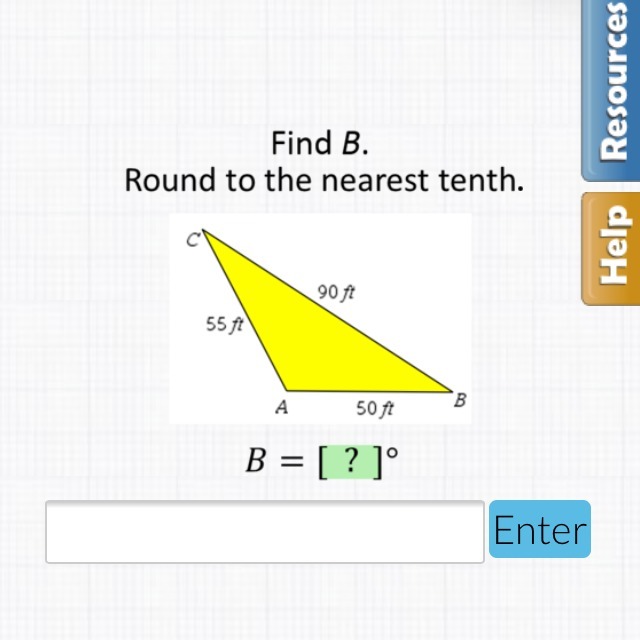 55^2 = 90^2 + 50^2 - 2*90*50*Cos(B)