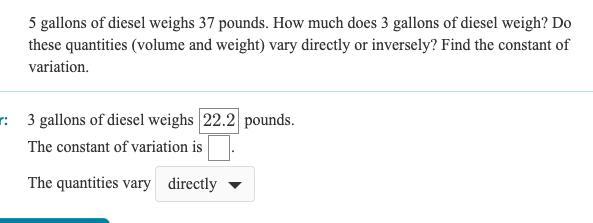 Then, 1 gallon will weight = \frac{37}{5} =7.4 pounds
