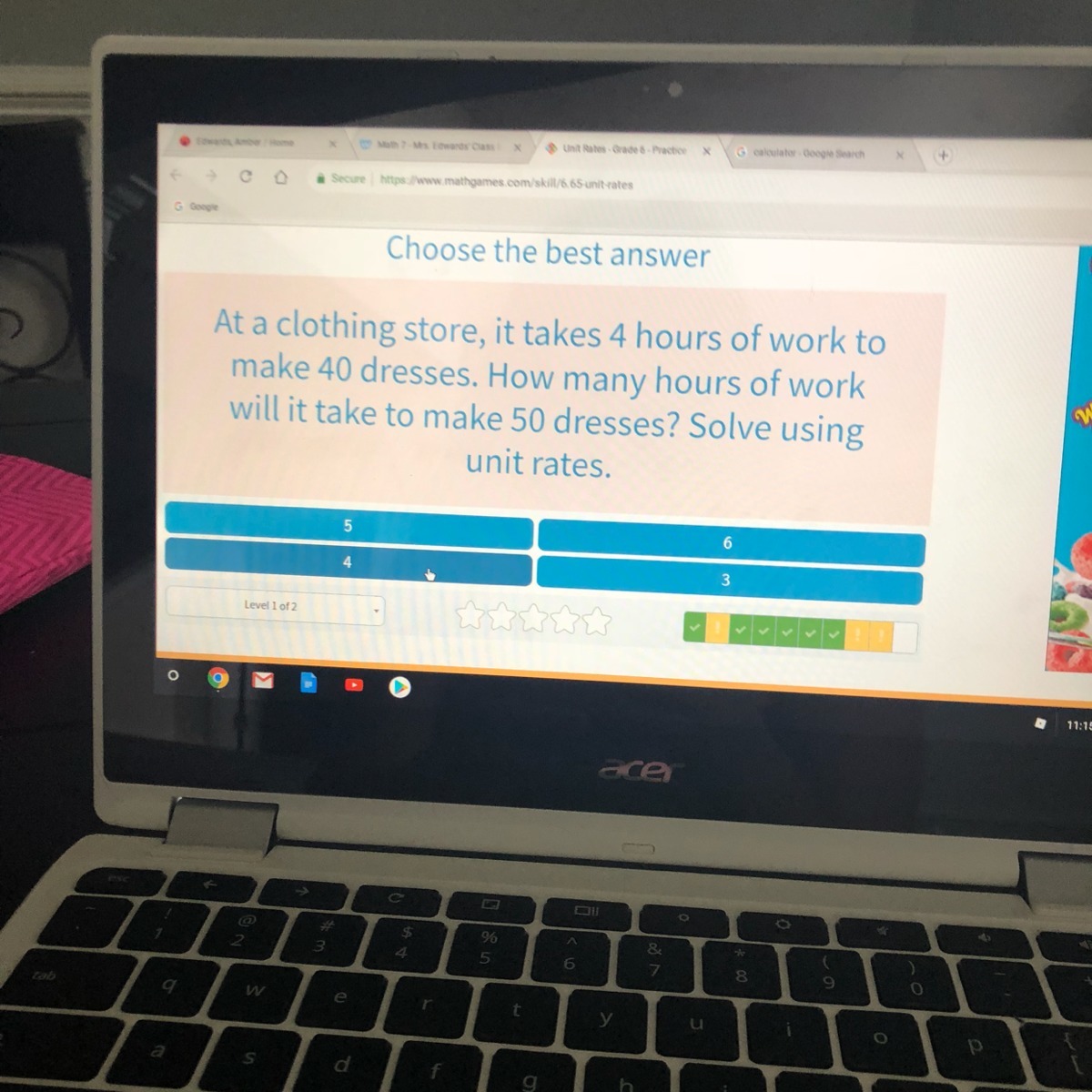 So 4 hours for 40 dresses.
